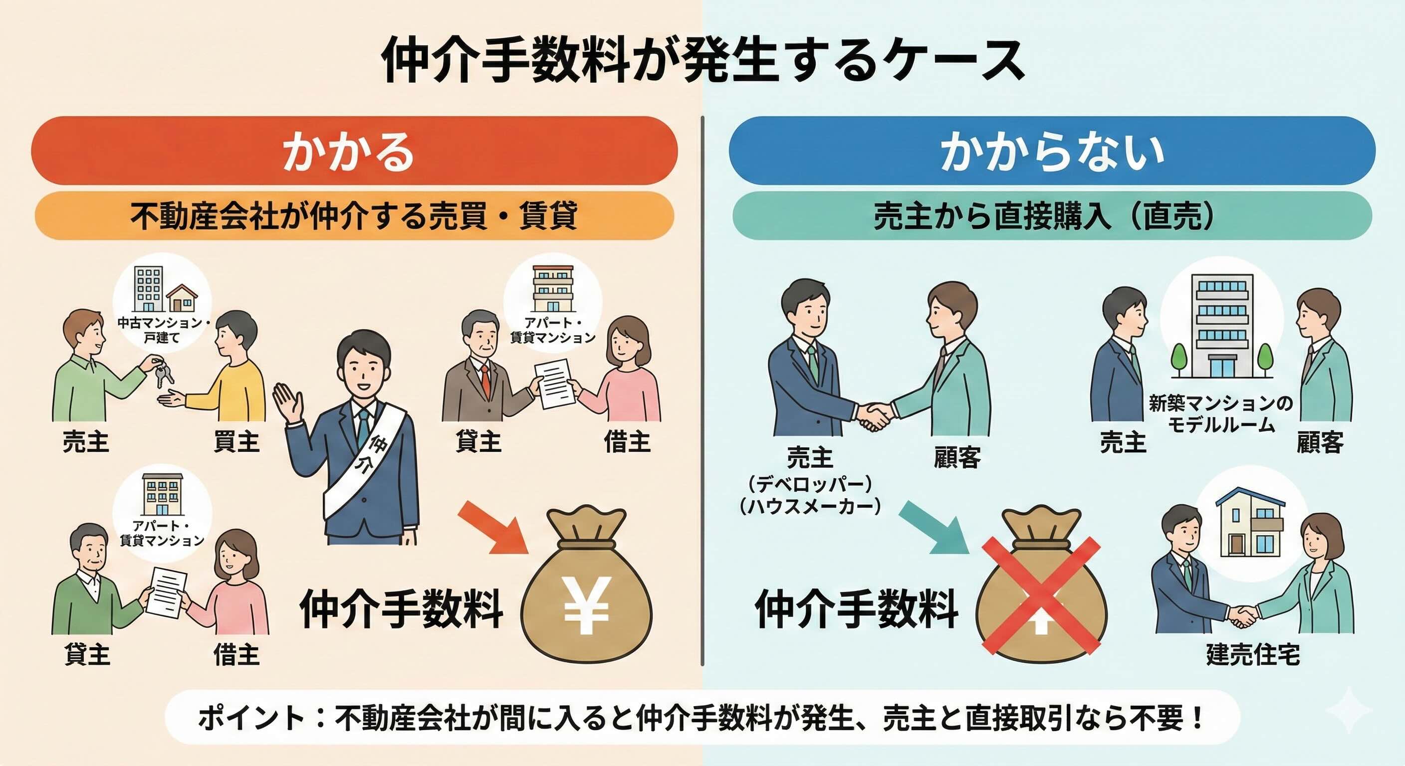不動産売買の仲介手数料は、マンション・戸建て・土地のどの物件タイプでも計算方法は同じ(売買価格×3%+6万円)です。ただし、物件タイプごとに知っておくべき注意点があります。